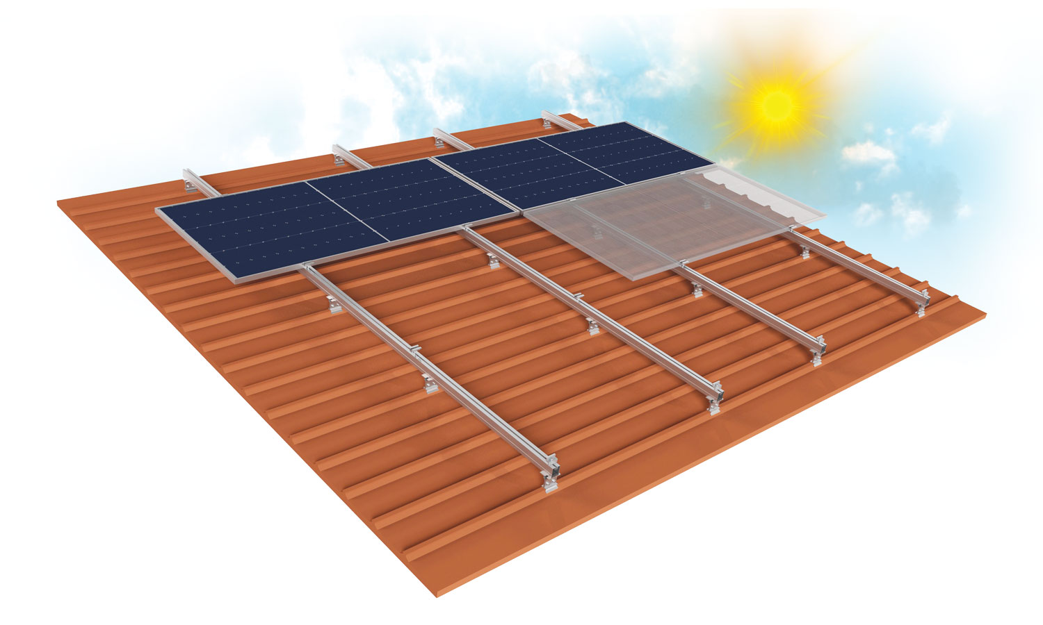 Assembly Types Design range suitable for all roofs In parallel to roof Types of Fixing on Roof Compression on Sandwich Panel Product Specifications Aluminium Construction 6063-T6-66